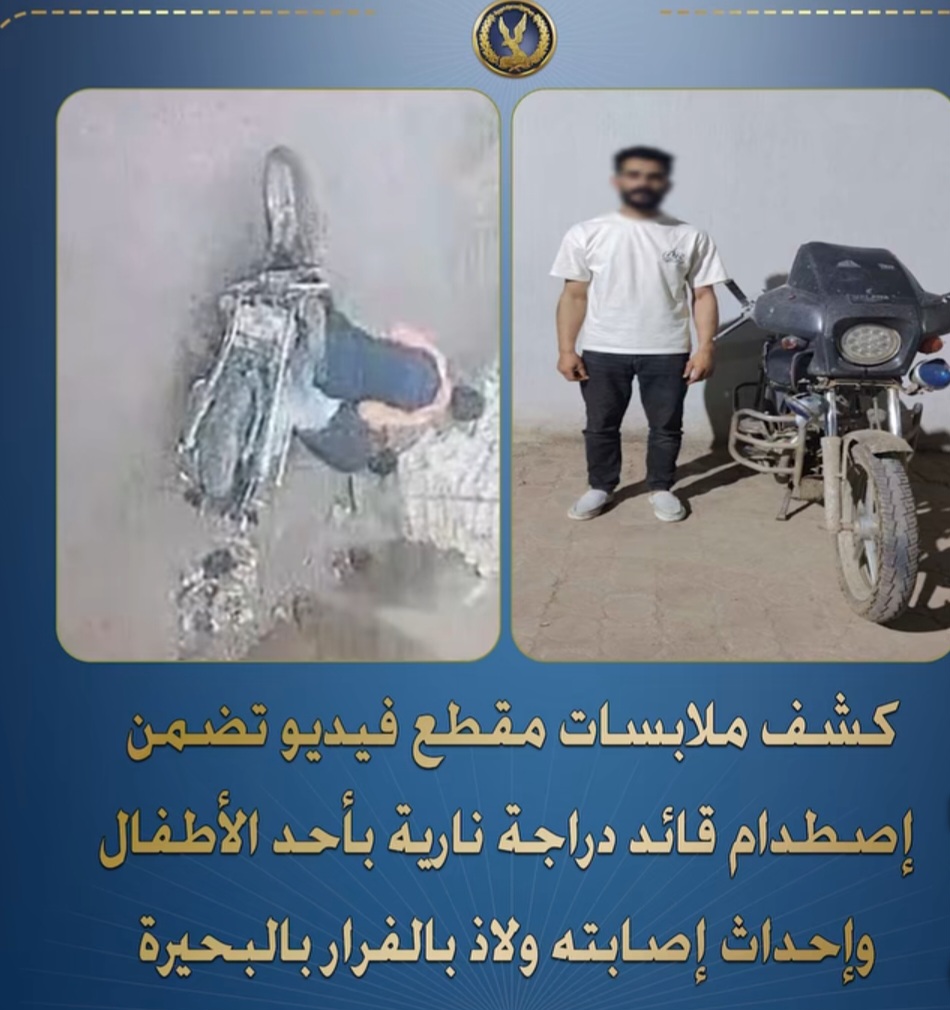 فى إطار كشف ملابسات مقطع فيديو تم تداوله على مواقع التواصل الاجتماعي، تضمن اصطدام قائد دراجة نارية بأحد الأطفال وإحداث إصابته ولاذ بالفرار بمحافظة البحيرة، تمكنت الأجهزة الأمنية من تحديد وضبط مرتكب الواقعة.